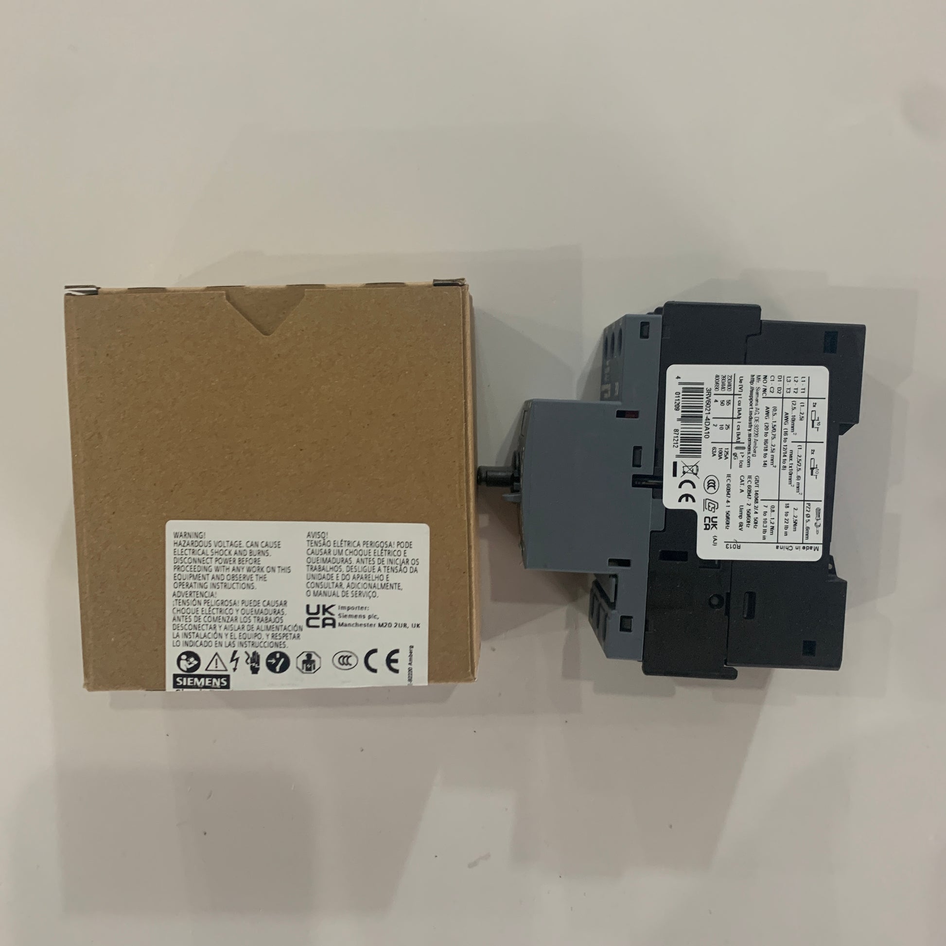 siemens 3RV6021-4DA10Circuit breaker 25 A, trip breaker 2025 A, N release 325 A, used for motor protection, grade 10, threaded connection, standard switch capacity,